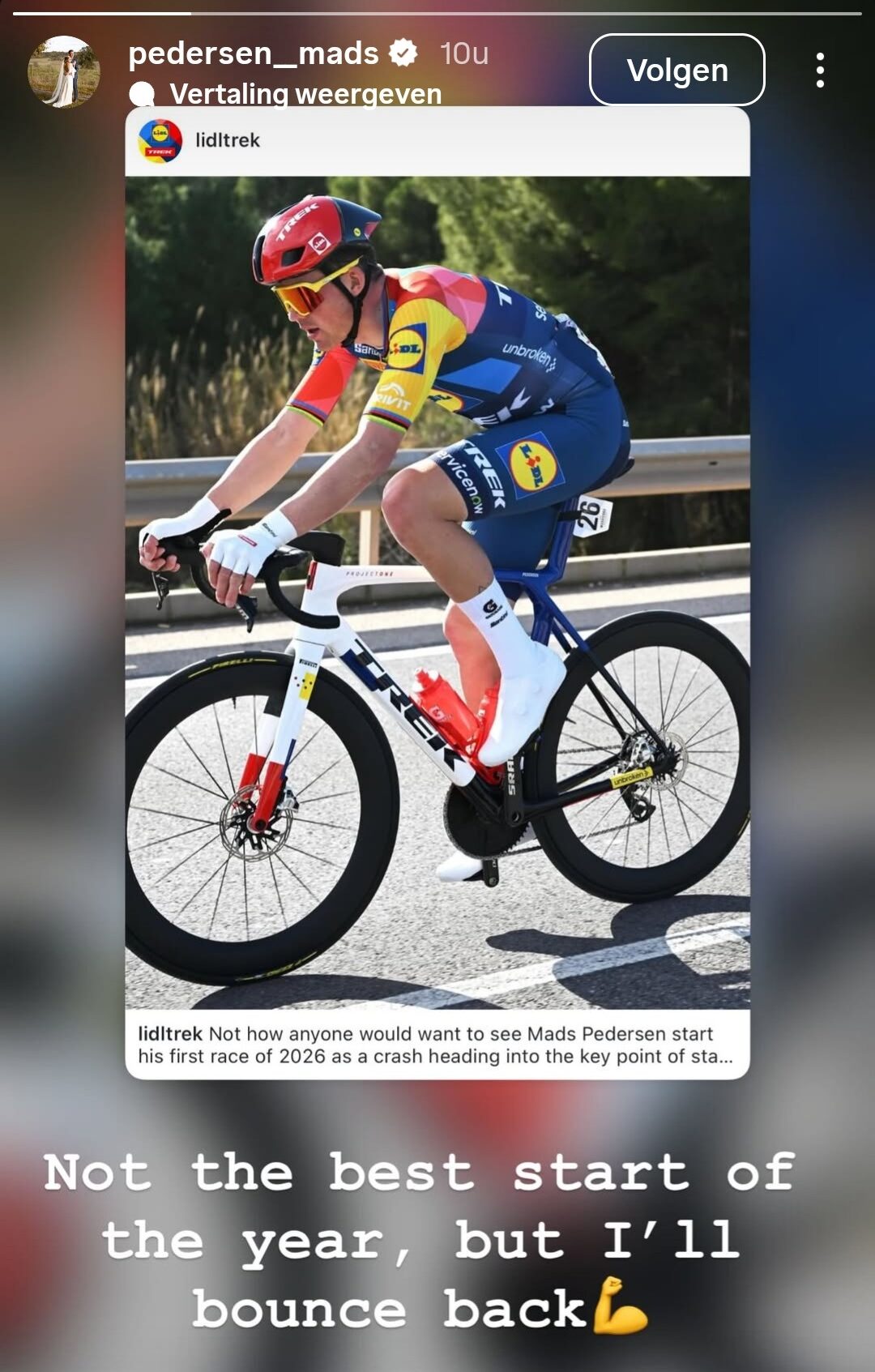 “The first priority for Lidl-Trek is to ensure Mads receives the best possible care. The primary focus is on achieving the most successful recovery possible to minimize the impact on his season goals,” the team said Wednesday evening. “In due course, we will communicate his return to racing. If updates are necessary, we will share them.” How long the Dane will be sidelined remains unclear at this stage.
