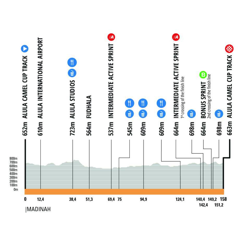 The sixth edition of the AlUla Tour starts on Tuesday, January 27 with a relatively flat and thus sprinter-friendly stage, starting and finishing at the AlUla Camel Cup Track camel racetrack. There are no significant climbs along the way, so it would take something unusual to prevent this stage from ending in a bunch sprint. There is one caveat: the wind in the Middle East can often cause echelons and hence exciting racing. This threat also looms in the second stage to and from AlManshiyah train station, but here too, the fast men are the biggest favorites.
