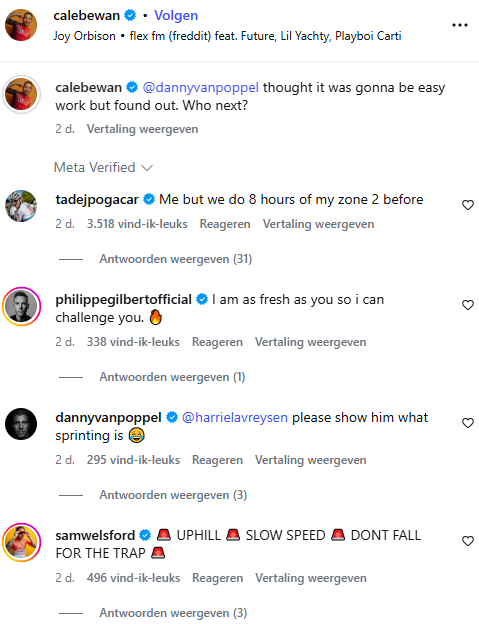 "Danny van Poppel thought it would be easy, but he found out otherwise. Who’s next?" Ewan challenges other pros. Van Poppel himself suggests letting Ewan sprint against Harrie Lavreysen. "Harrie Lavreysen, please show him what sprinting is," jokes the Dutchman. The world track sprint champion hasn’t responded under Ewan’s post yet, but someone else has: Tadej Pogacar.
